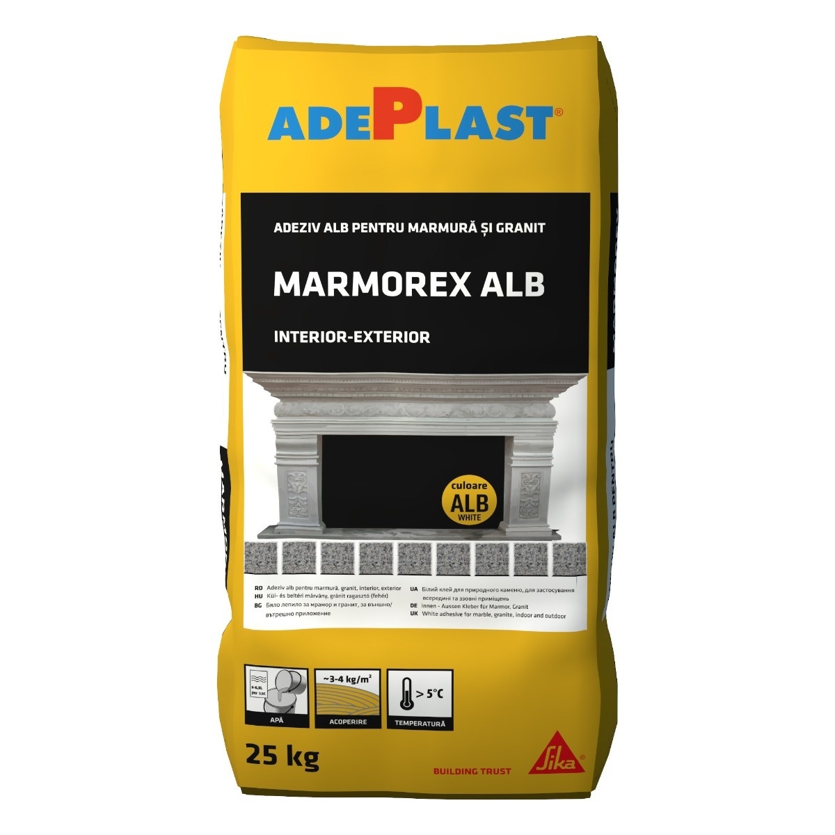ADEZIV ALB PENTRU MARMURA SI GRANIT, APLICARE INTERIOR/EXTERIOR, ADEPLAST MARMOREX ALB / 25KG